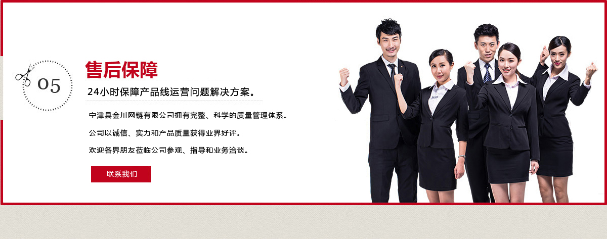 寧津縣金川網鏈有限公司 手機:18706390255 手機:18888222851 聯系人:許經理 郵箱:2278781213@qq.com 地址:山東省德州市寧津大祁工業園 網址:www.sdjcwl_com.yaododo.cn ![]() |